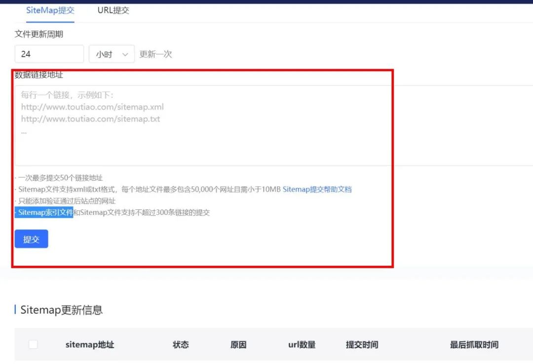 第二步,进入头条搜索平台,链接提交,点击· Sitemap提交,把· Sitemap地址添加进去即可。