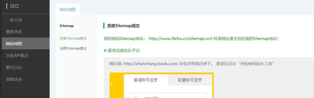 为了头条spider更好的抓取您的网站,向头条搜索提交网站的sitemap文件。第一步:进入管理后台,点击左边SEO的网站地图,点击百度地图,复制该处的索引文件。
