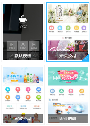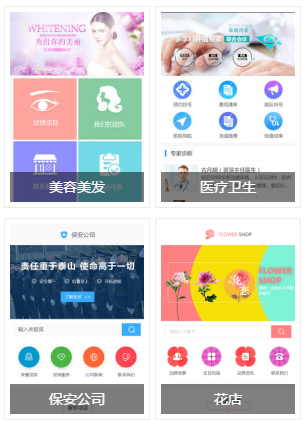 其中展示型模板 10 套:婚庆公司、家政公司、职业培训、房地产中介、花店、水果超市、广告公司、美容美发、医疗卫生。
